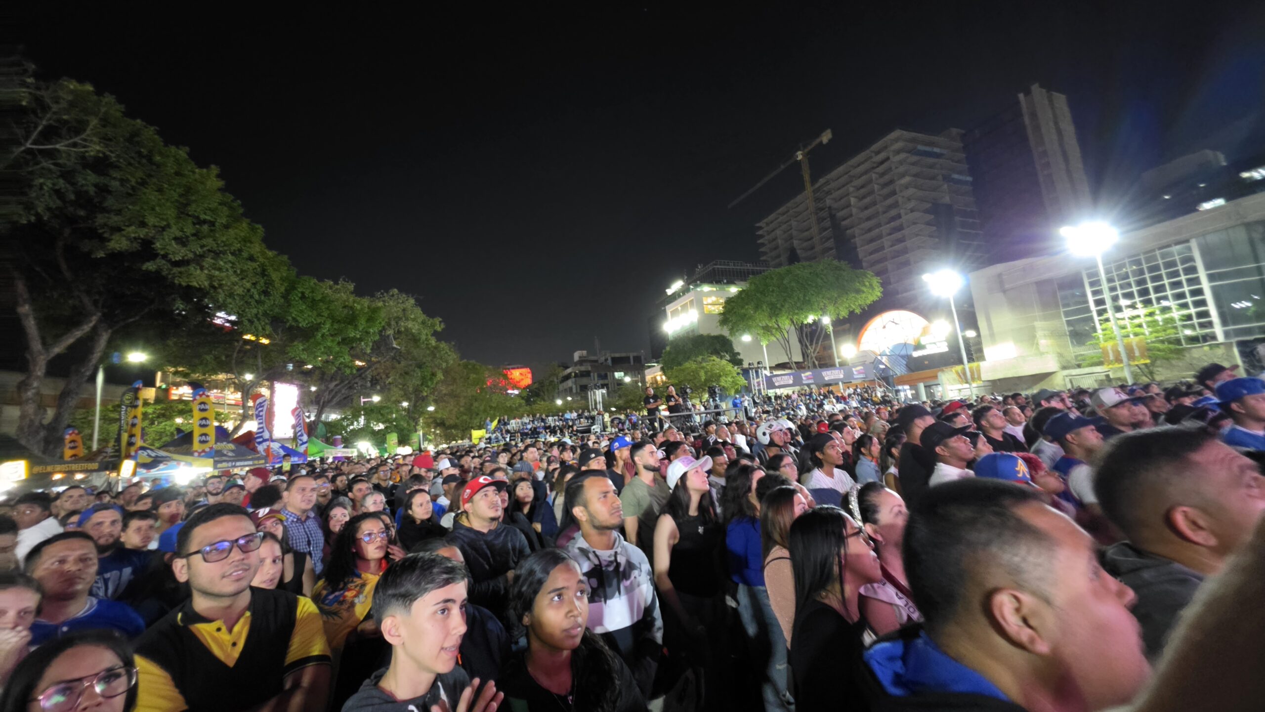 La parte baja de la cuarta entrada de la Gran Final del Clásico Mundial de Beisbol comienza. Venezuela intentará seguir arriba mientras la plaza sur de Altamira se queda pequeña para la cantidad de fanáticos que acudieron a ver, en una reducida pantalla, el juego. Abarrotados, de pie, algunos sentados, otros parados: todos miran fijamente la pantalla. Nadie quiere distraerse ni un segundo de lo que sucede en el campo.