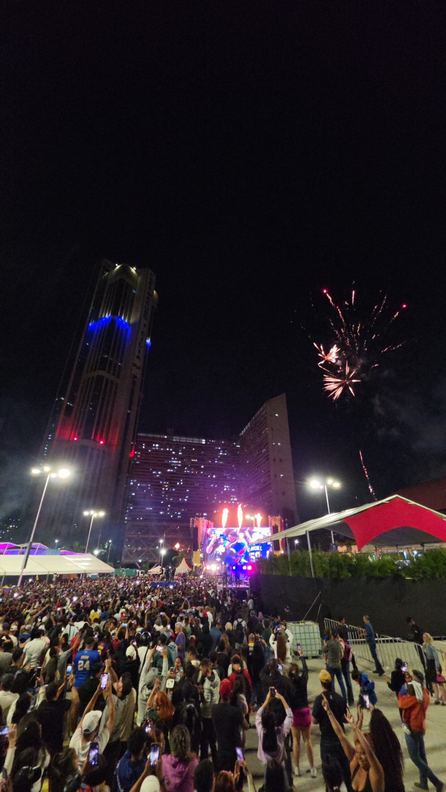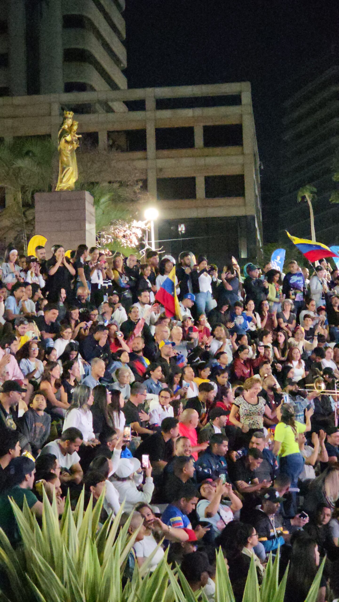 Fuegos artificiales estallan de fondo sobre el despejado cielo caraqueño. Los fanáticos gritan, se abrazan e incluso se bañan en cerveza mientras saltan. La pantalla muestra a Suárez arrodillado, con la bandera sobre sus hombros agradeciendo a Dios mientras en Caracas solo se escucha la ovación. “Venezuela” es la palabra más pronunciada, con orgullo y alegría, entre los presentes.