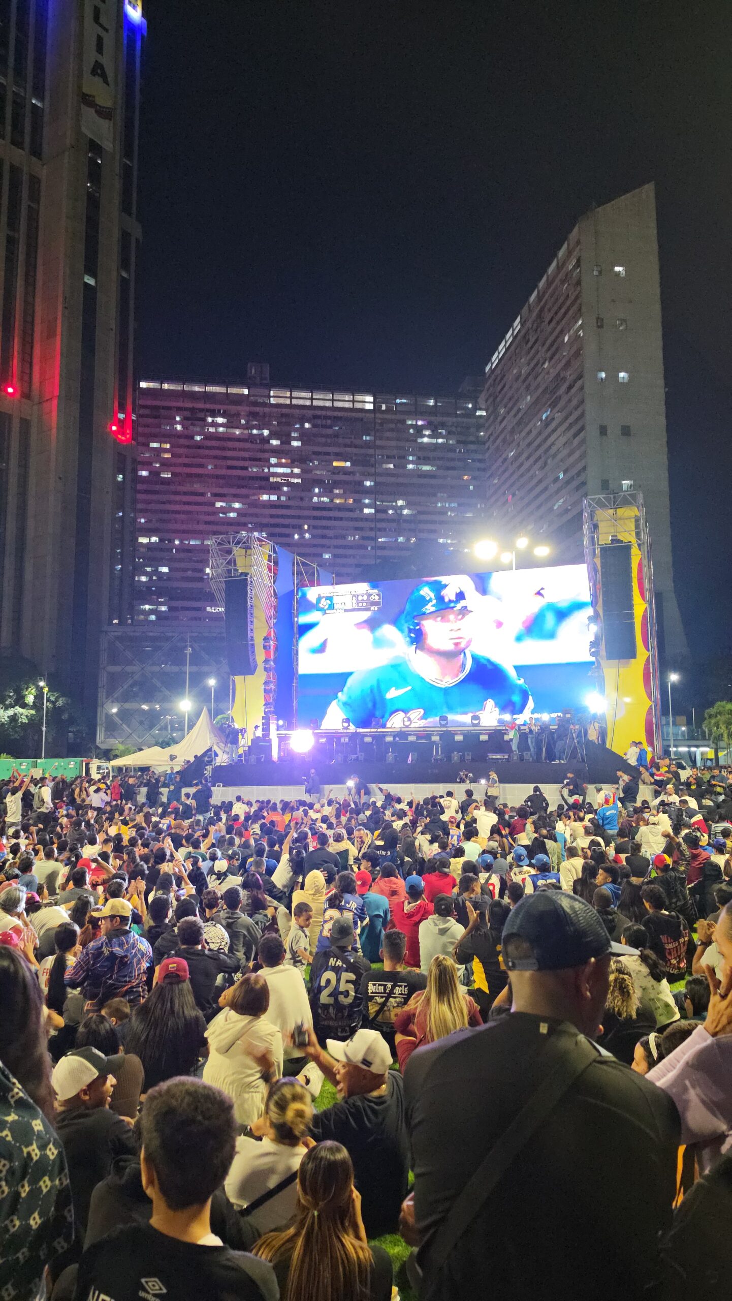 Entre luces brillantes y camisas con el nombre de Venezuela, la plaza Alfredo Sadel de Las Mercedes escuchó con emoción las notas del Himno Nacional antes de la final del Clásico Mundial de Beisbol. Los tambores venezolanos sonaron de fondo en la transmisión en vivo del loanDepot Park de Miami que comenzó después de las 8:00 pm. La alineación de Venezuela poco cambió con respecto al juego contra Italia, a quienes vencieron tras una épica remontada.