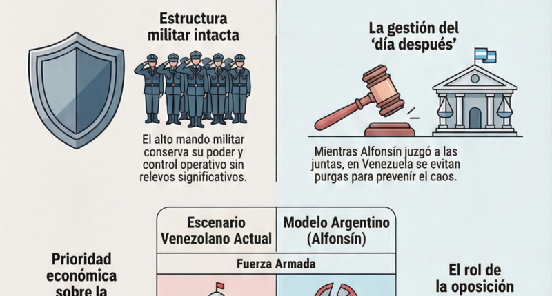— No creo que a esta altura del proceso y sobre todo a partir de los acontecimientos que ocurren se pueda establecer una comparación entre Venezuela y el proceso que en Argentina condujo a la transición democrática y a las elecciones que ganó Raúl Alfonsín. En Venezuela atraviesa un periodo de incertidumbre. Ni siquiera el poder militar que planificó, diseñó, implementó y montó toda la operación que condujo a la captura de Nicolás Maduro ha establecido un calendario más o menos creíble.