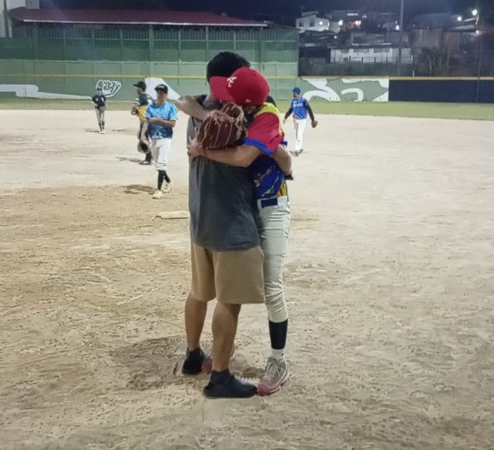 Tras su liberación, José Vicente Romero Peña se reencontró con su hijo en el estadio de béisbol de Carrizal, en los Altos Mirandinos