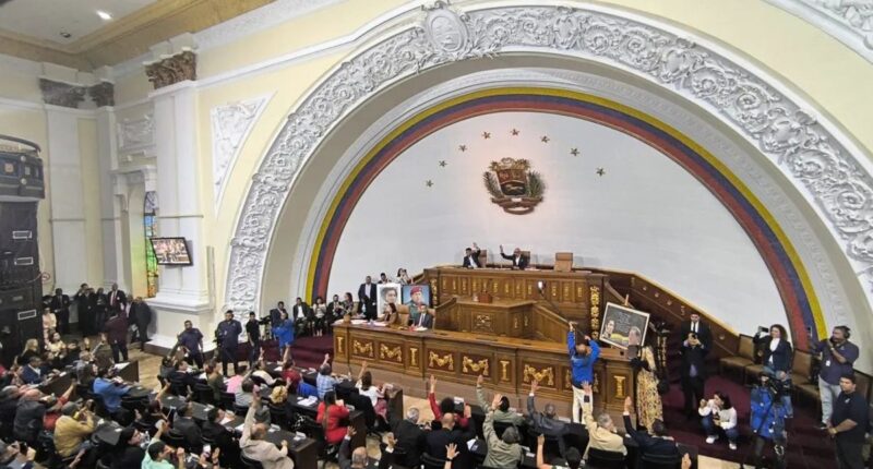 Fotografía difundida por la Asamblea Nacional de Venezuela de la sesión sobre la ley de amnistía el pasado jueves, en Caracas. Foto: EFE/ Asamblea Nacional