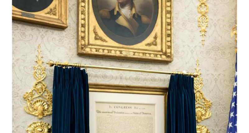 «Le dije esto… Escucha esto: hace 200 años, el general Lafayette le dio a Simón Bolívar una medalla con la cara de George Washington. Bolívar, desde entonces, se quedó con esa medalla por el resto de su vida», dijo a los periodistas.